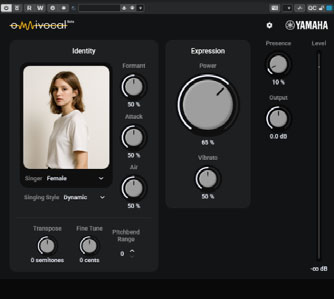 歌声合成のVSTiが標準搭載。Cubaseキーエディター内で歌詞の打ち込みができ、音源のパラメーターは変更すると即時反映されるため、よりスピーディーに歌声合成を行うことができます。