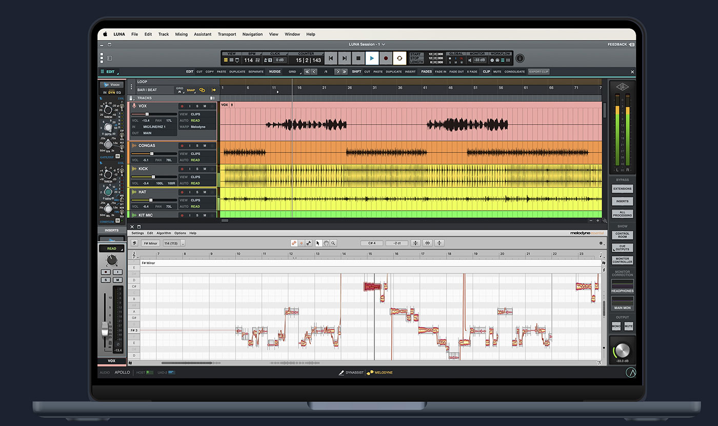 LUNA 2.0はARA Plug-inをサポートします。LUNA Pro付属のMelodyne Essentialでボーカルチューニングとピッチ補正をしたり、Dynassist Liteによるダイナミクス管理など、トラック上で作業の流れを妨げずにアクセス可能です。