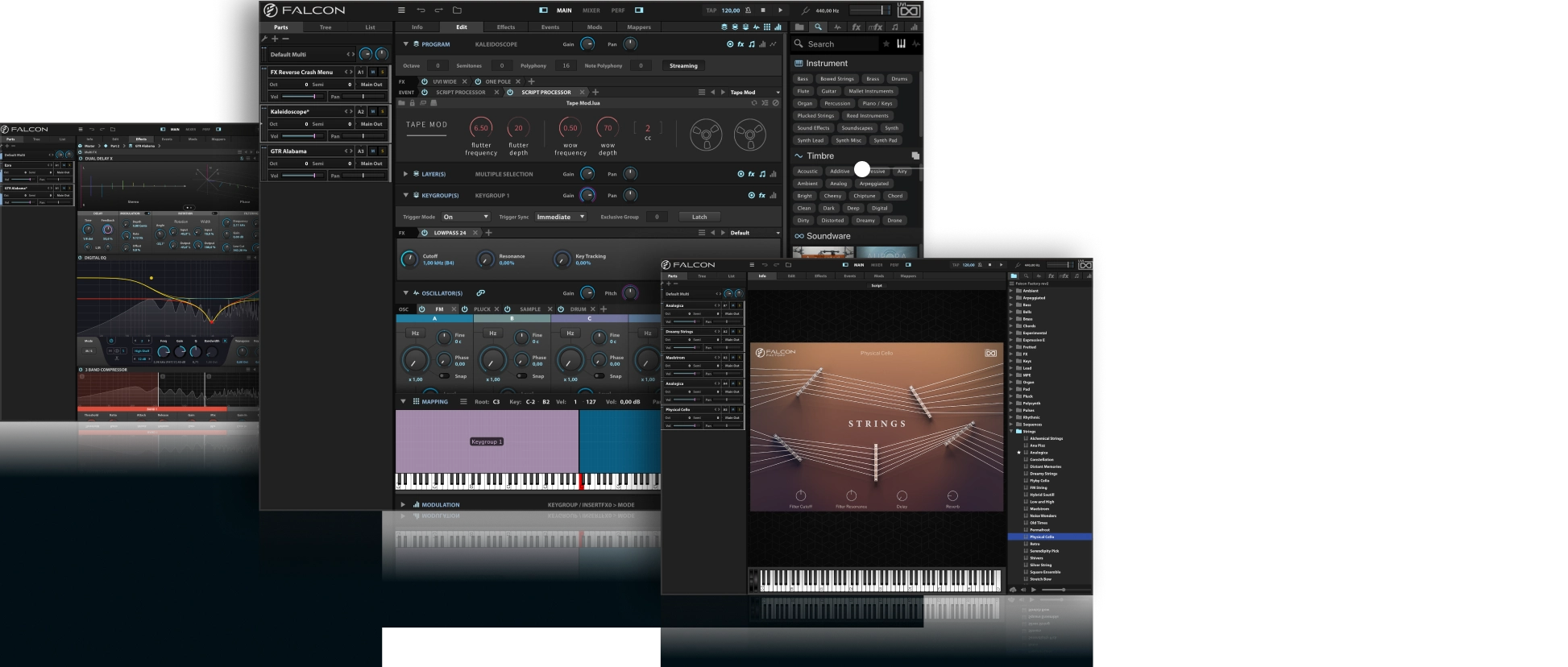 Falconはこれまでも、先進的なシンセサイズ、サンプリング、モジュレーション、スクリプト(イベント処理)を統合した柔軟かつ強力な環境として、サウンドデザインの最前線を切り拓いてきました。Falcon 2026はその進化をさらに推し進め、精緻で個性豊かなサウンドを探求・形成・演奏するための新たな可能性を提供します。(既存Falconユーザーは最新バージョンにアップデートが可能)