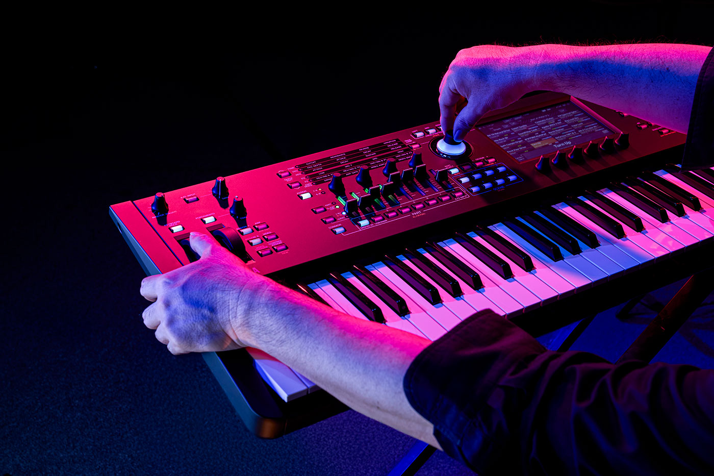 MODX Mシリーズは、フラッグシップモデル「MONTAGE Mシリーズ」の豊かな表現力と高い操作性を継承し、アクティブに活躍するキーボーディストのニーズに応えるコンパクト&ライトウェイトを実現したシンセサイザーです。