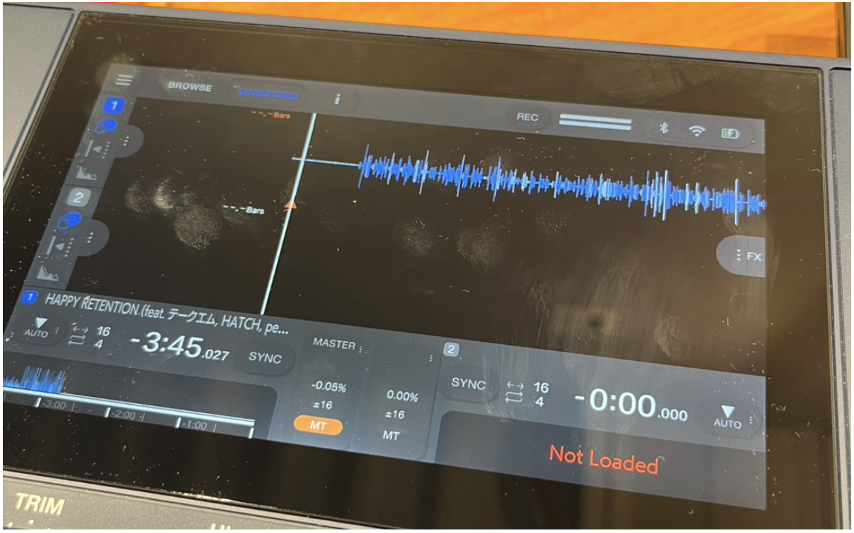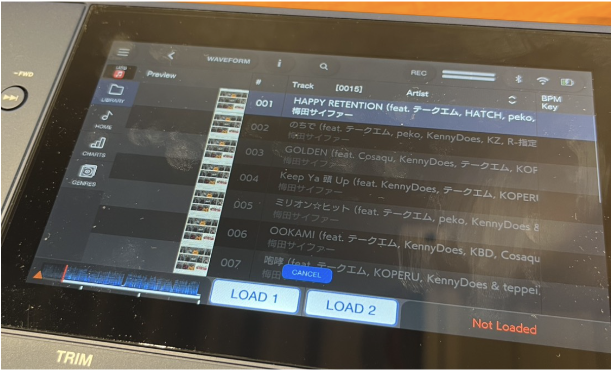 そして前回で既にログインしたApple Musicからアクセスしてかけたい曲を選択し”LOAD1”をタップすると左ホイール側に曲が読み込まれました。