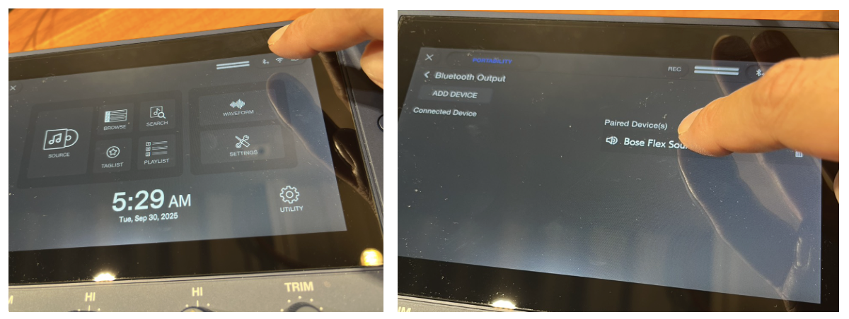 そしてその左のスピーカーマークの横をタップすると違う画面に行くので”Paired Device”に出てくるBluetooth機器の名前をタップします。