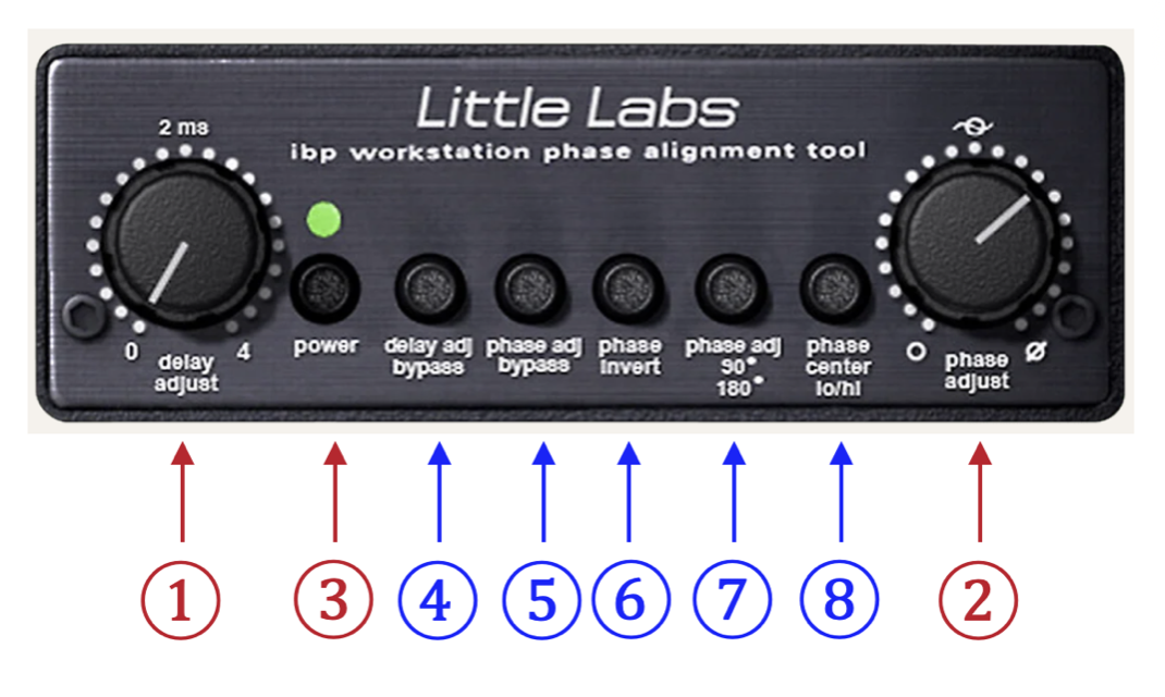 ⑧のスイッチは、②のphase adjust をlo(低音)hi(高音)で合わせるのか変更できます。