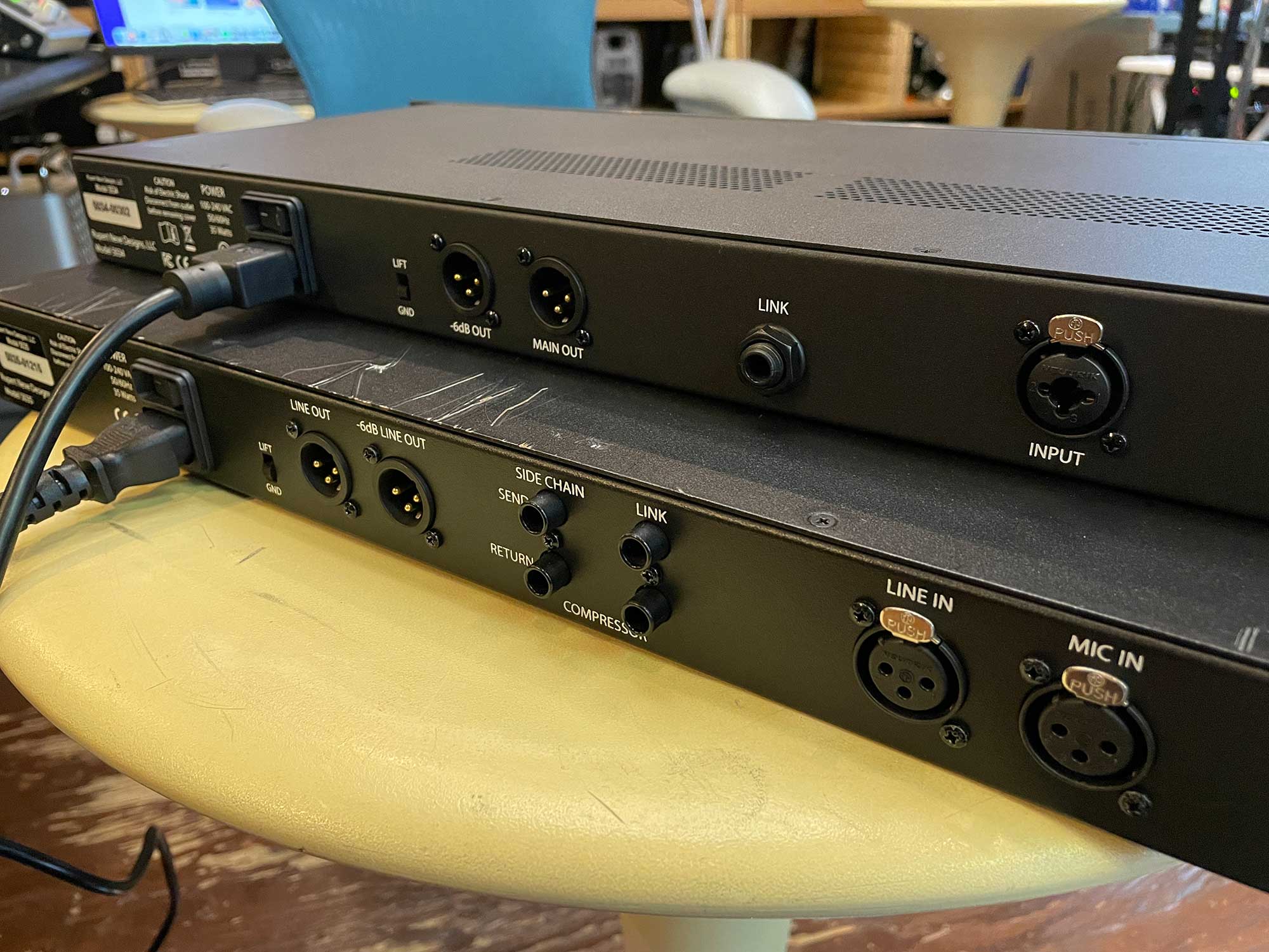 裏側を見ますとNewton Channelの方がシンプルになっており、LINE,Mic入力がコンボジャックで共通になっているのとShelford ChannelにはあったSIDE CHAINインサートがないのが特徴になります。