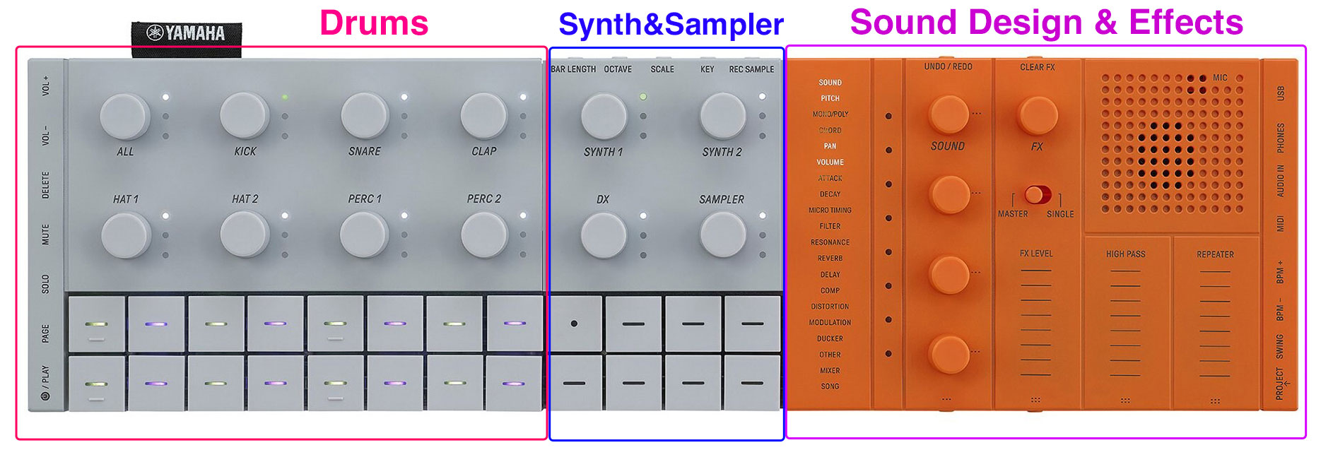 そんなYAMAHAからリリースされた最新型のモバイル・オールインワンギアということで、期待に胸を膨らませながら今回使用してみました。PCによるDAW全盛のこの時代、あえて登場したSEQTRAKでどのような音楽制作が可能なのか、今回はその主な機能をご紹介していきます。
