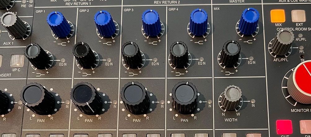 それぞれの4つのモノバスとメインバス(Group1,2,3,4とMIX)には2バンドのシェルビングEQを備えています。また、チャンネルのインプットとは別に、Reverb Returnを2系統備えています。合流先をGroup1/2 ,3/4 ,Mixから選べるので、Reverb以外にもアイデア次第で使い所がありそうです。