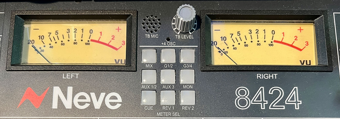VUメーターはコンソール中央の、視線が自然に落ちるポイントに位置しています。メーターに送るポイントを任意に選択可能ですので、回線チェック、レベル合わせはやりやすそうですね。さすがNEVEといったところでしょうか。