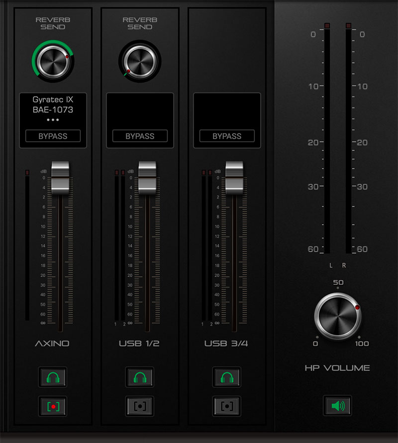 さてさて俗に言うループバックの機能ですが、Axionもしっかりこのループバック機能が備わっております!コントロールパネルを開き、下側に行くとMIXERボタンがあります。これを開くと画像のような画面が、右に登場してきます。