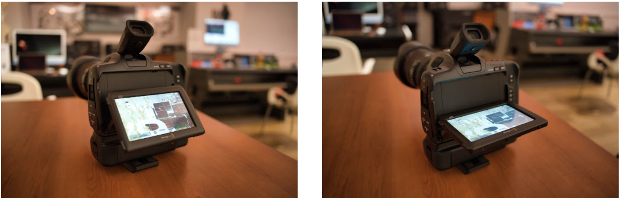 BMPCC 6K Proはチルト液晶を採用しているので、どんな体勢でもディスプレイを覗くことができます。しゃがみながらの撮影が以前のモデルは難しかったので、これも便利ですね。