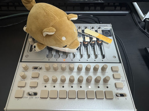 プリペアド・ピアノのようにレゾネーターの上に物を置いてシーケンスを走らせてみました。