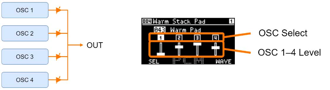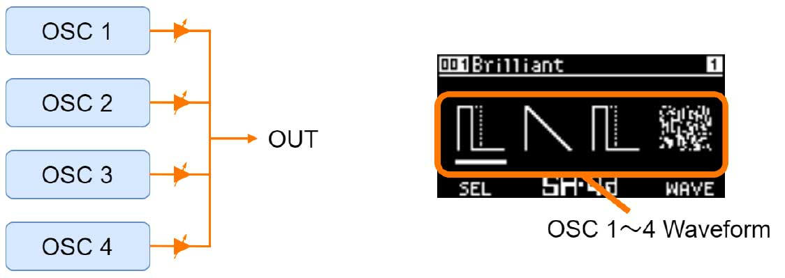 4つのオシレーターの波形をそれぞれ選んでミックスできるバーチャル・アナログ・オシレーター