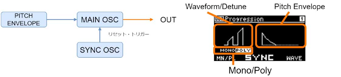 ピッチ・エンベロープを搭載し、シンク可能な2つのバーチャル・アナログ・オシレーター