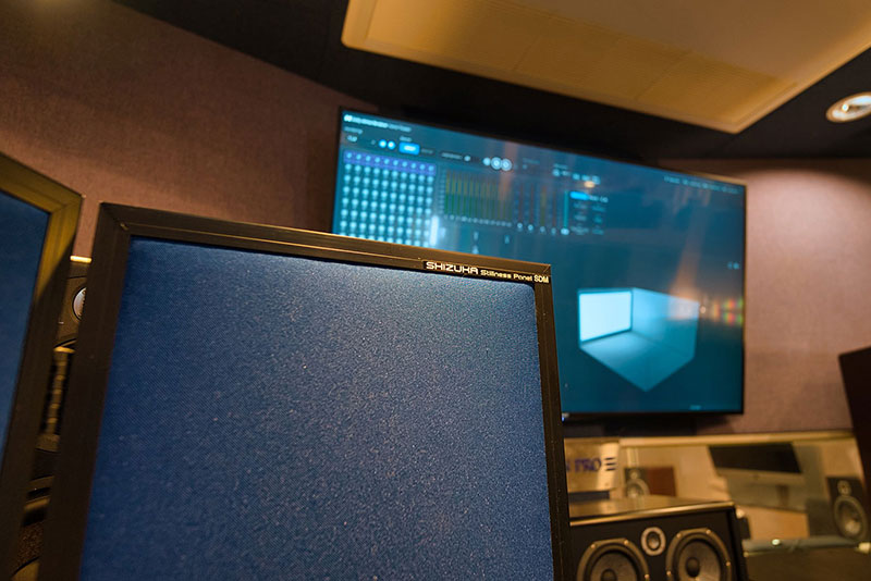 一定の密度、素材のみの吸音材を使用した場合、吸音可能な周波数帯に偏りが出てしまい、ともすると暗く狭い印象のサウンドになってしまう事がありますが、SHIZUKA Stillnes Panel SDMは広い帯域をバランス良く吸音してくれるので、むしろ開放感のあるサウンドで収録が可能です。